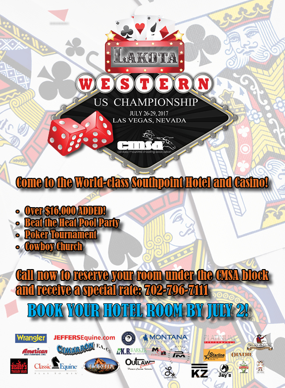 Book your hotel room by July 2! Call 702-796-7111 and mention you're with the CMSA Lakota Western Championship.